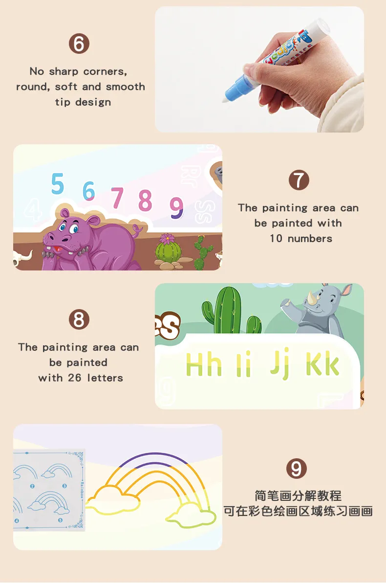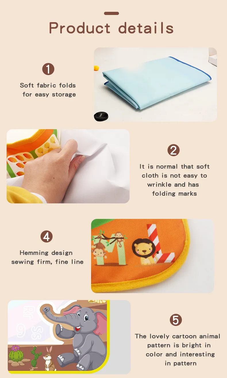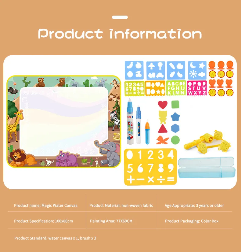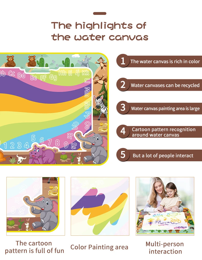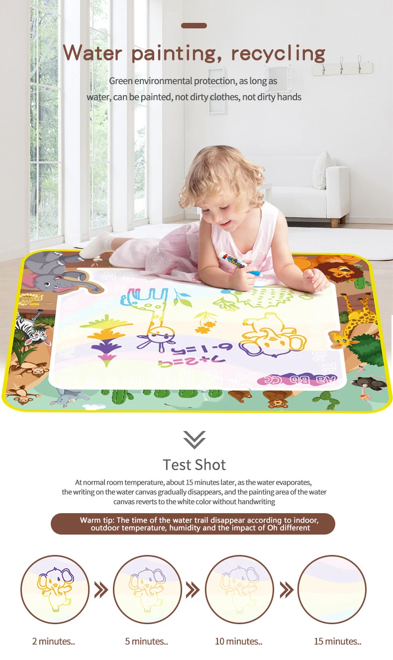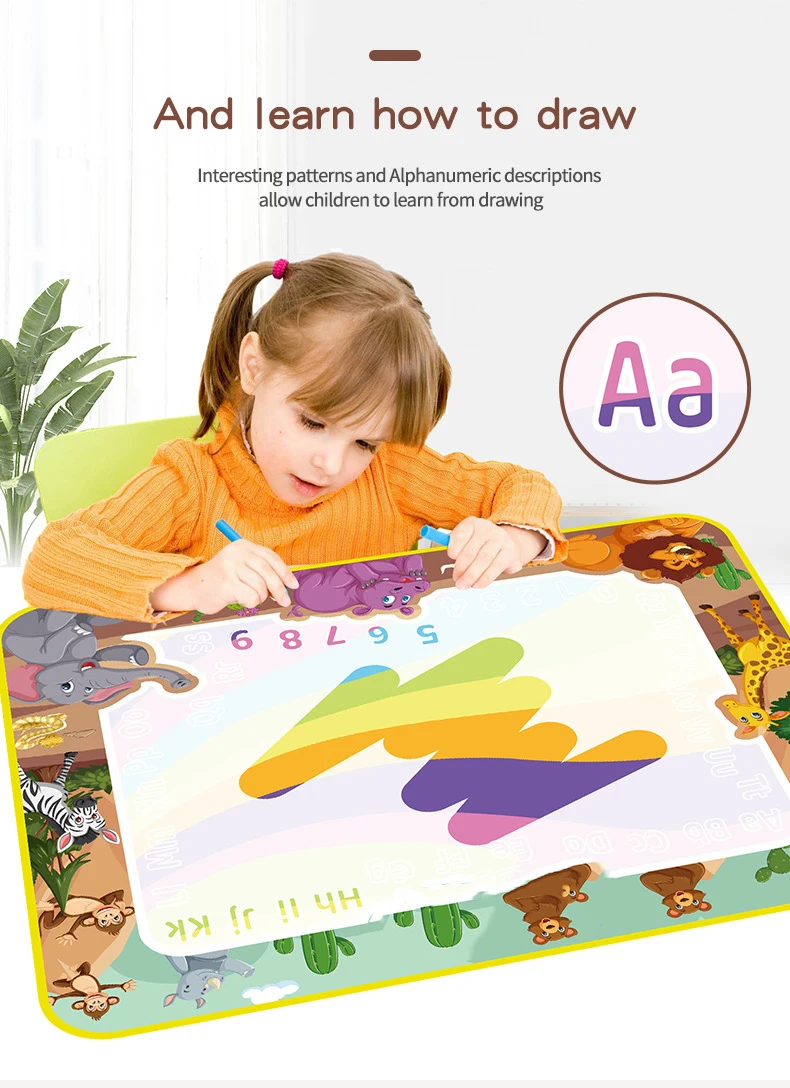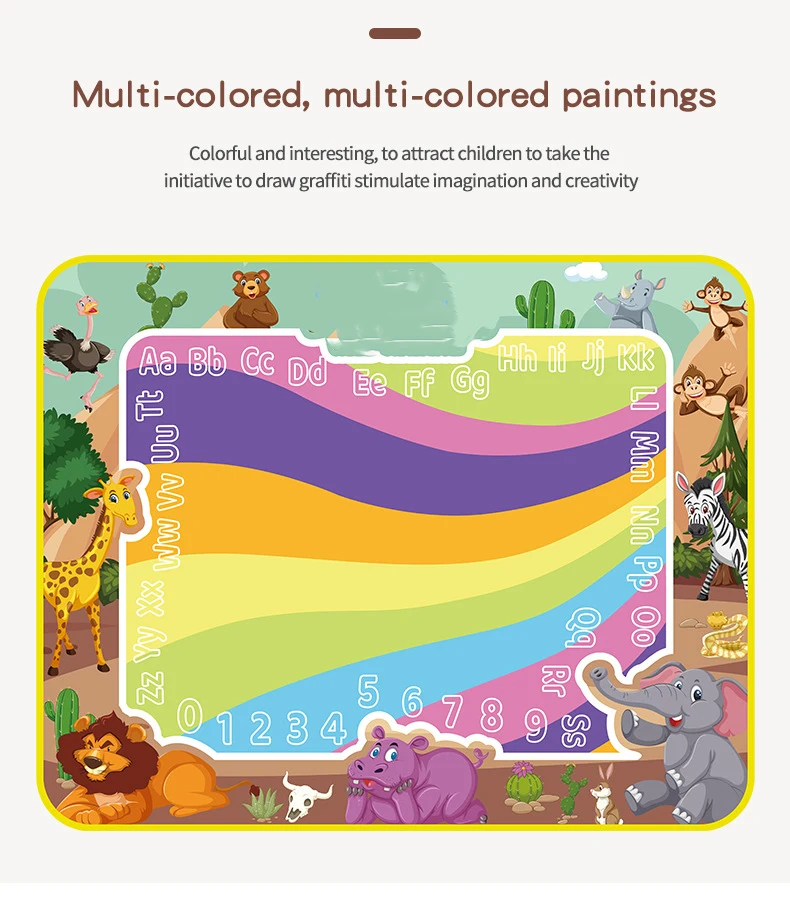 Our Water Doodle Mat goes beyond just being a canvas for drawing. It often includes educational elements such as letters, numbers, shapes, and various themes, turning playtime into a fun and interactive learning experience. This can contribute to the development of fine motor skills and early cognitive abilities.
