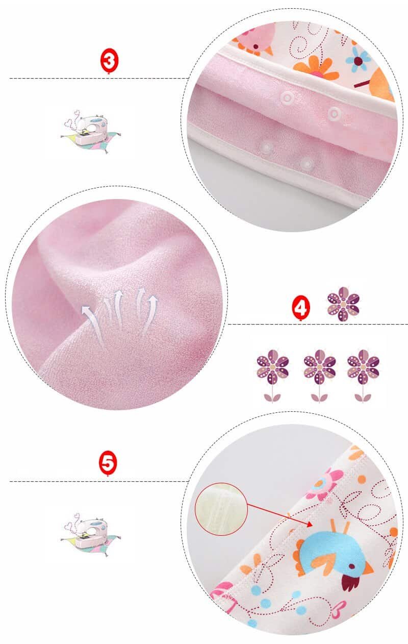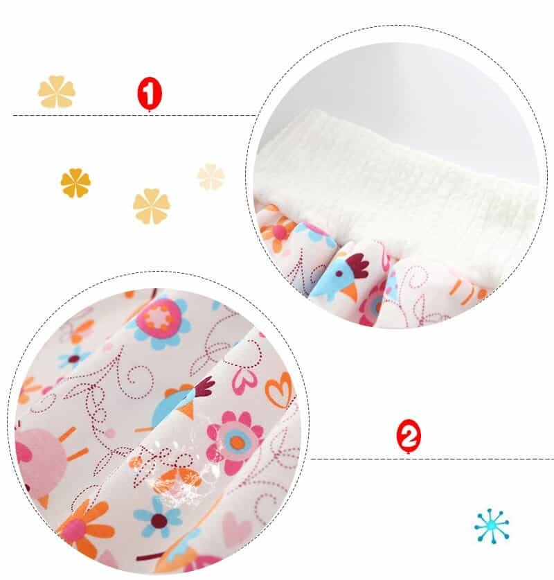 Four stitches and six stitches for smooth stitching makes the diaper skirt not rub the baby’s delicate skin, making the baby more comfortable.