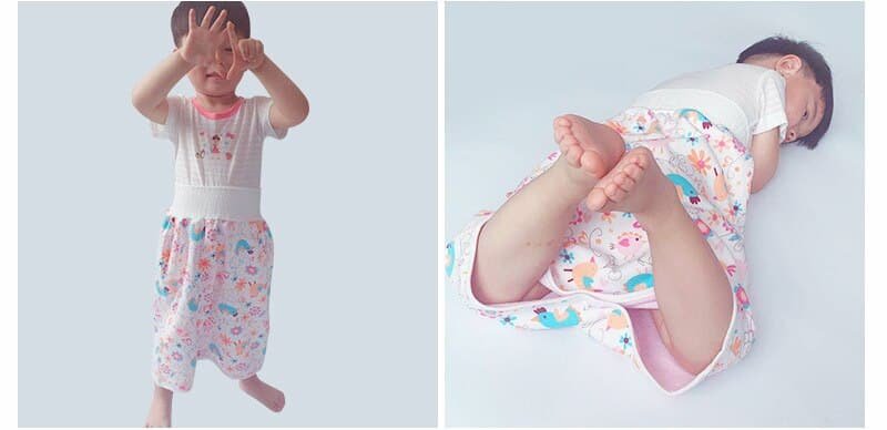 • Material : Outer layer-cotton; Middle layer-100% TPU Waterproof fabric; Inner layer- 95% cotton, 5% polyurethane(Nighttime Anti-Bedwetting Training Skirt which does not interfere with baby movements.