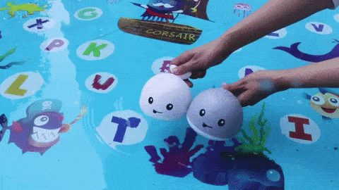 The automatic water induction spray sprinkles fountain-like effect water and flashes colorful LED lights while it floats
