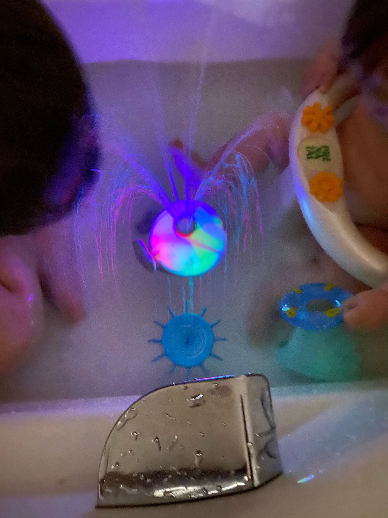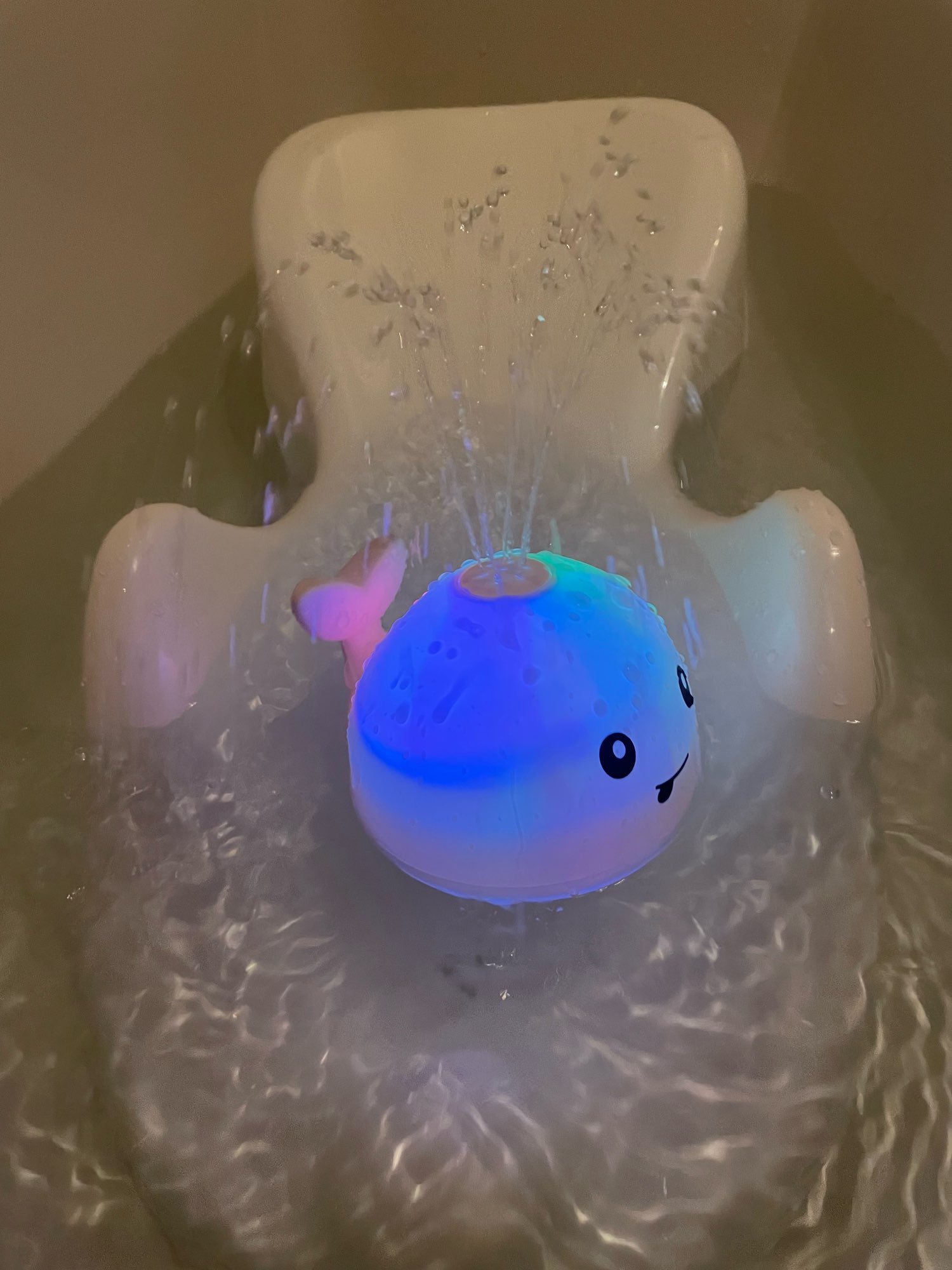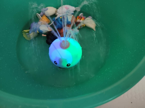 Beautiful baby bath toy, meets the given features, lights light and water strip