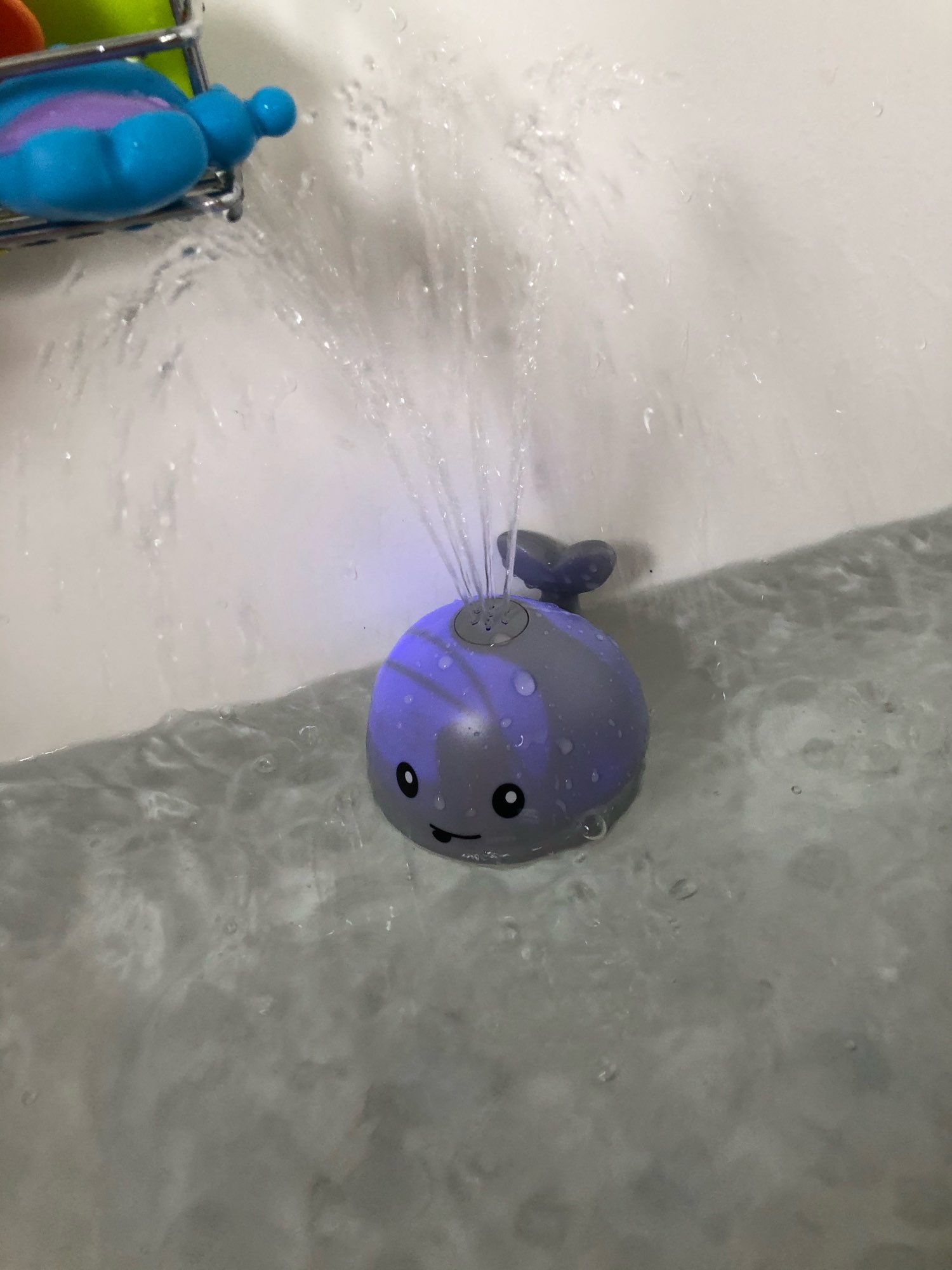 An electronic Whale Spray Water Toy with an adorable face & fun water effects