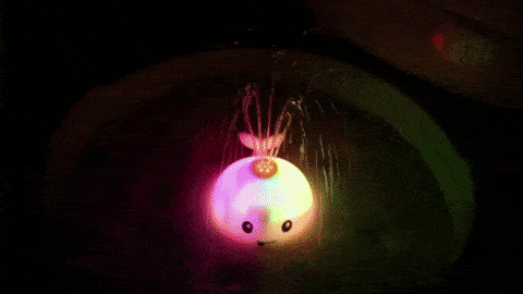 The automatic water induction spray sprinkles fountain-like effect water and flashes colorful LED lights while it floats